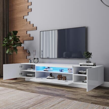 Sublimez votre salon avec ce meuble TV 180 cm au design moderne et épuré, idéal pour les intérieurs contemporains. Sa finition blanche brillante apporte luminosité et élégance, tandis que ses lignes minimalistes s’intègrent parfaitement dans tout type de décoration.