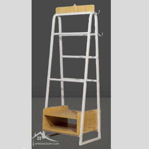 Cette étagère porte voile sur pied séduit par son design moderne, épuré et fonctionnel.